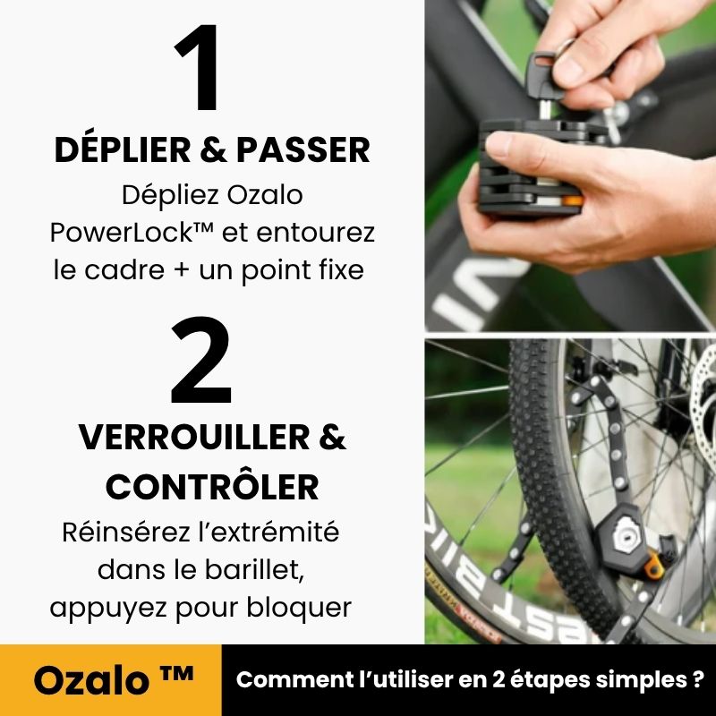 Antivol vélo Ozalo Powerlock™ — Protégez votre vélo comme s'il était rangé dans un coffre-fort.