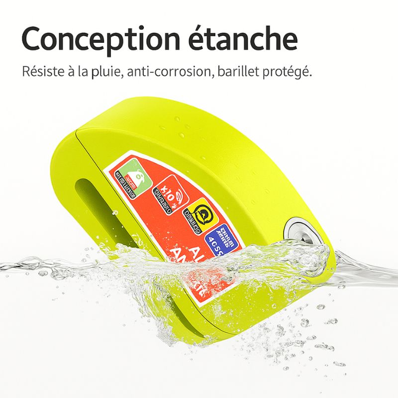 Oui. Le corps du bloque-disque est pensé pour les intempéries urbaines (pluie, trottoirs mouillés). Séchez rapidement aprÚs forte averse pour préserver la mécanique.