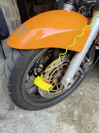 Ne roulez jamais avec le bloque-disque en place : risque dâabĂźmer le frein/la fourche.