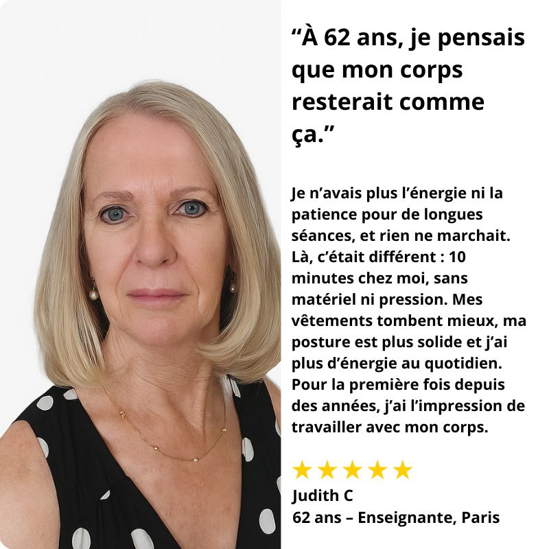 Pas de souci ! Ce programme est 100 % adapté aux débutants. Vous n'avez besoin que de 10 minutes par jour et nous vous guidons étape par étape. Pas de salle de sport. Pas de mouvements compliqués. Juste de vrais progrès depuis chez vous.
